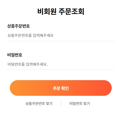 비회원으로 주문하신 분들은 상품주문번호와 비밀번호를 입력하여 주문내역을 조회할 수 있습니다.